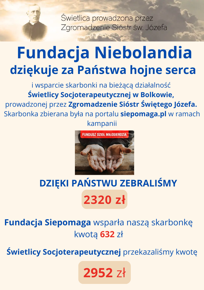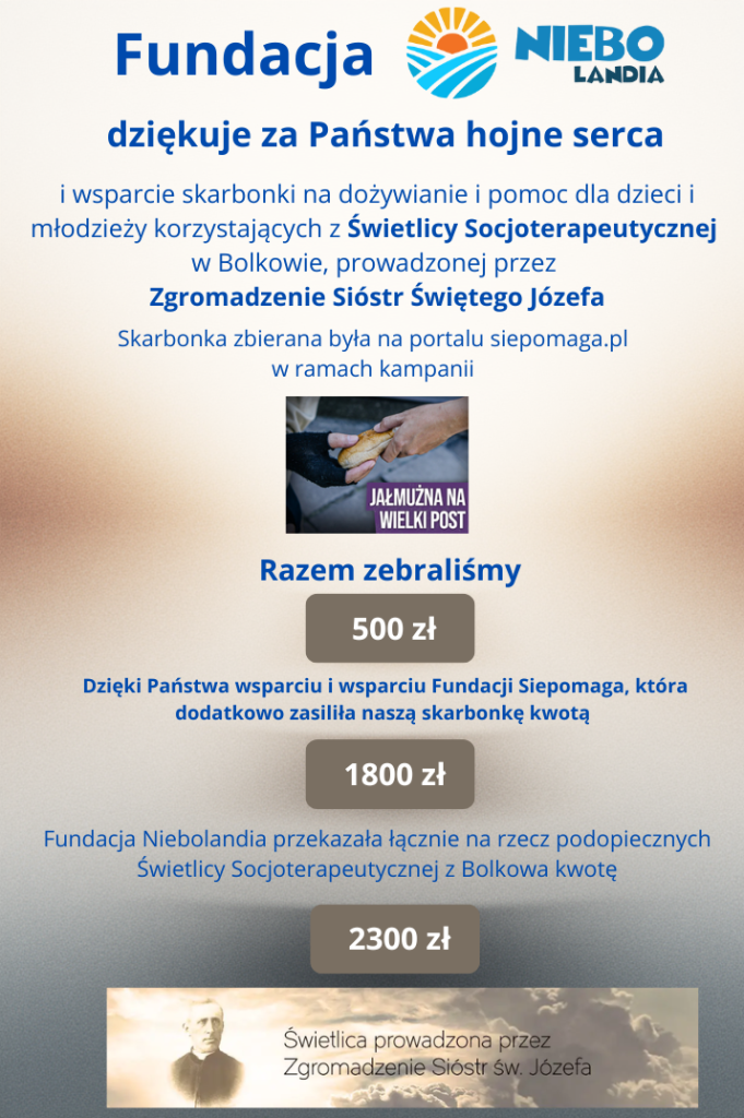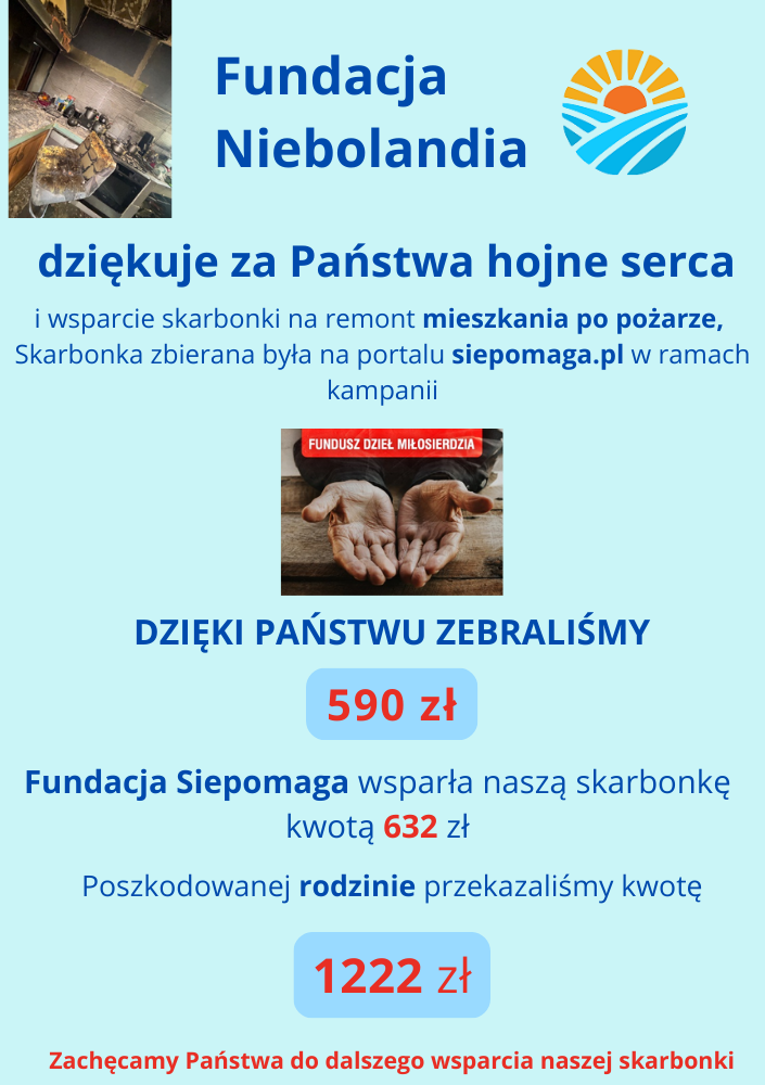 Jesteśmy tu na ziemi tylko przez chwilę, dlatego pomóżmy sobie dobrze przeżyć ten czas WESPRZYJ NAS HISTORIA ZBIÓREK Dziękujemy za dotychczasowe wsparcie i prosimy o kolejne.